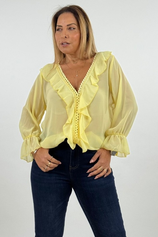 חולצה עדינה ומלאת סטייל במגוון צבעים החולצה עשויה בד שיפון קליל ושקפקף עם נפילה רכה על הגוף, מעניקה מראה נשי ואוורירי.