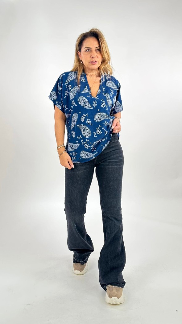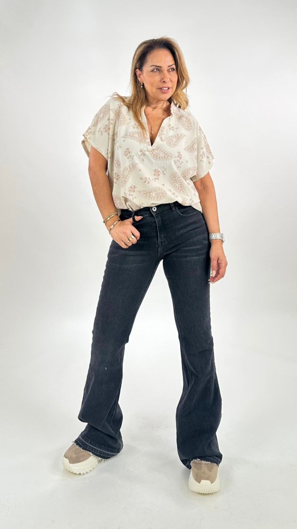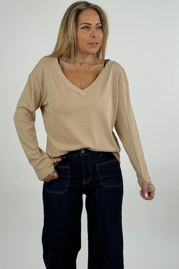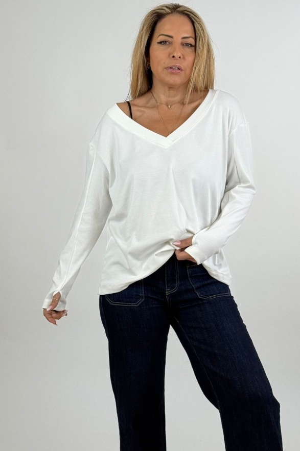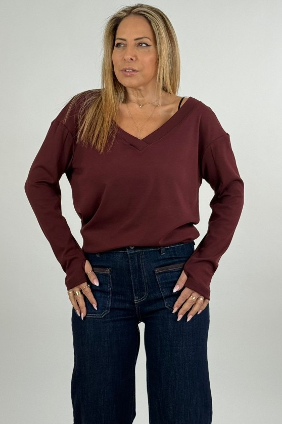 החולצה בעלת מפתח V מחמיא, שרוולים ארוכים וגזרה רפויה שיושבת יפה על הגוף ומאפשרת נוחות מקסימלית לאורך היום.