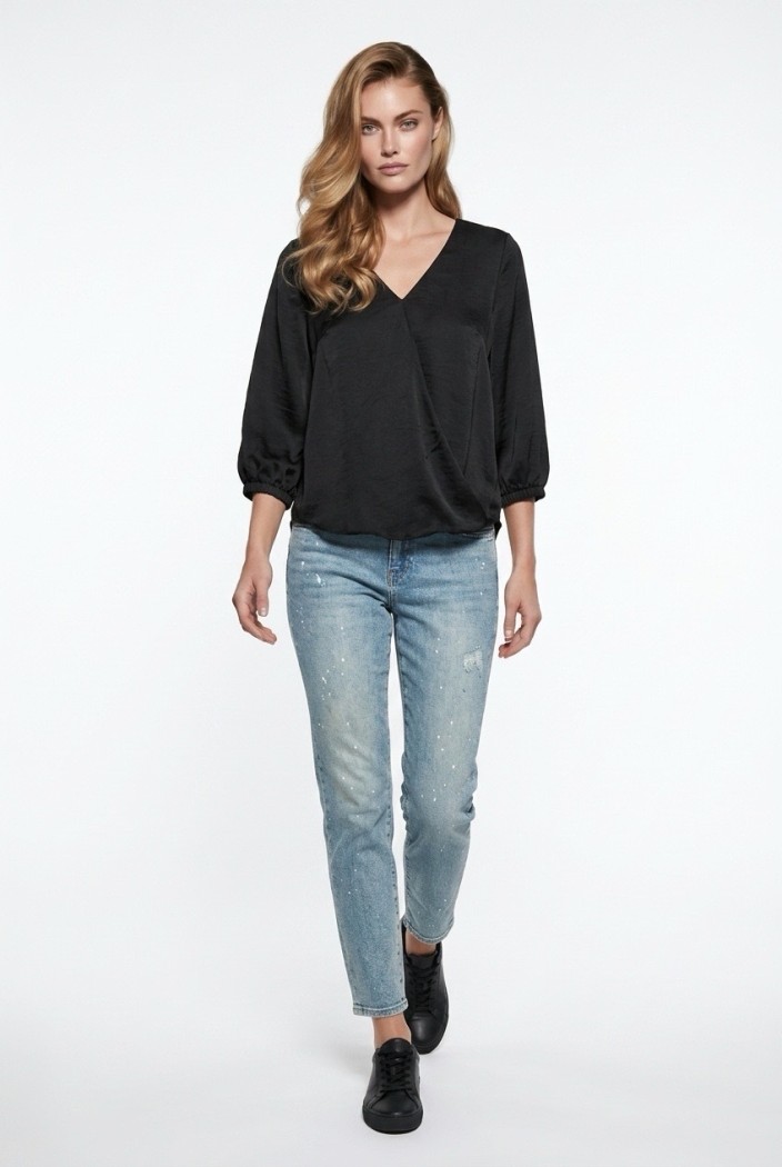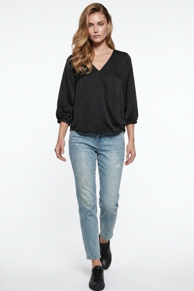 סטיילינג: בתמונה היא משולבת עם ג'ינס בהיר בעל עיטורי "כתמי צבע" למראה "קז'ואל-שיק" מודרני, אך היא תיראה מצוין גם עם מכנסיים מחויטים או חצאית עיפרון למראה רשמי יותר לעבודה.
