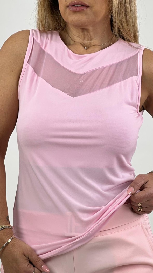 מחשוף וגזרה: הגופייה בעלת מחשוף עגול עמוק יחסית ומחמיא. הגזרה היא גזרת גוף צמודה המדגישה את קווי המתאר.